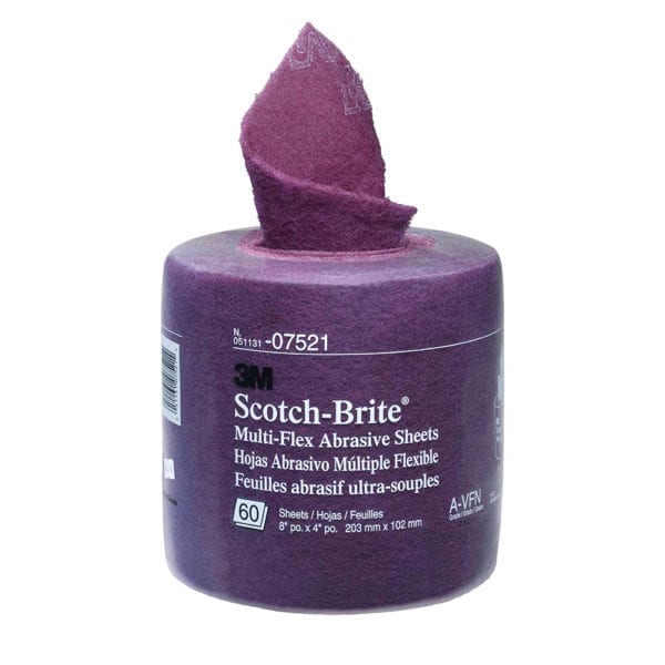 Scotch-Brite™ Multi-Flex Sheet is a thin, tough, highly conformable, sharp cutting, non-woven abrasive.