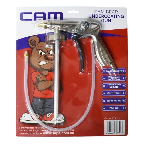 The CAM Undercoating Applicator gun has a die-cast aluminum alloy body with an easy-grip trigger handle. A very durable gun that’s excellent for applying automotive rust proofing, rubberised undercoating, chip guard, truck bed liner, and other general-purpose coatings.