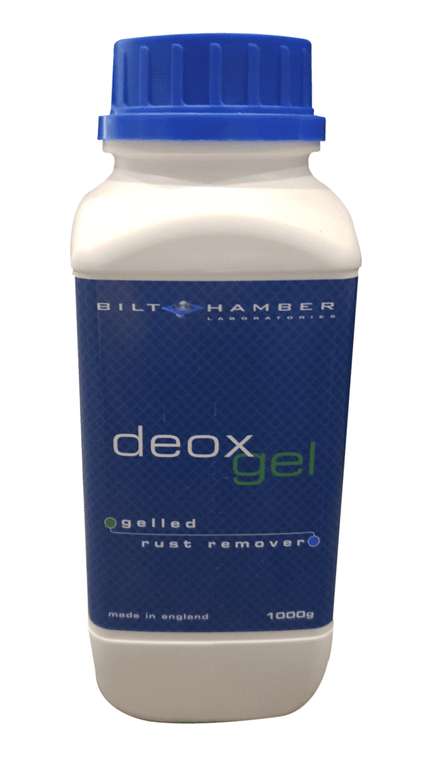 Deox-Gel is a viscous, highly thixotropic, rust remover, designed for corrosion removal on surfaces or objects too large to submerge in a bath of Deox-C.