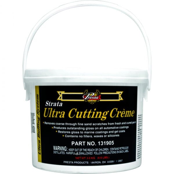 Presta Strata™ Ultra Cutting Crème is an aggressive compound developed to remove 1200-grit and finer sand scratches from soft and aged paint. It is also the ideal choice for detailing / valeting severely weathered and oxidized finishes.