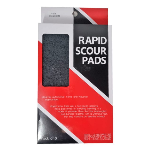 Rapid scour pads are non-woven abrasive hand pad suited to everyday cleaning. The scour pad is made of polyester fibers that are intertangled and bonded together with a urethane resin, that also contains an abrasive mineral.